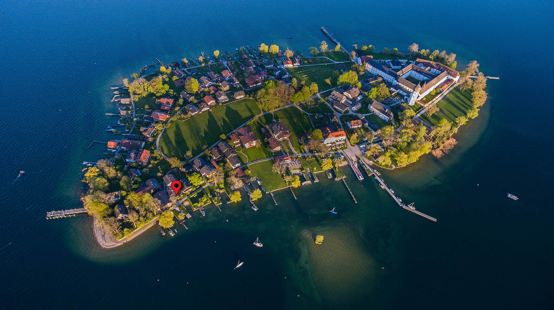Auf der Fraueninsel am Hauptsteg angekommen folgen Sie dem Uferweg links in südwestlicher Richtung. Sie erreichen uns wenige Minuten nachdem Sie die Gaststätte Inselwirt passiert haben rechts am Uferweg.